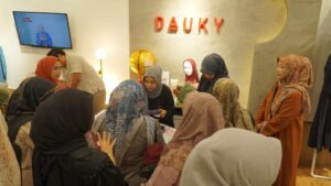 Gerai Elzatta Hijab di Bandung, Jawa Barat, Sabtu (24/08/2023), menghadirkan berbagai koleksi hijab dengan motif yang beraneka ragam dan unik, Grand New Opening Store MTC.